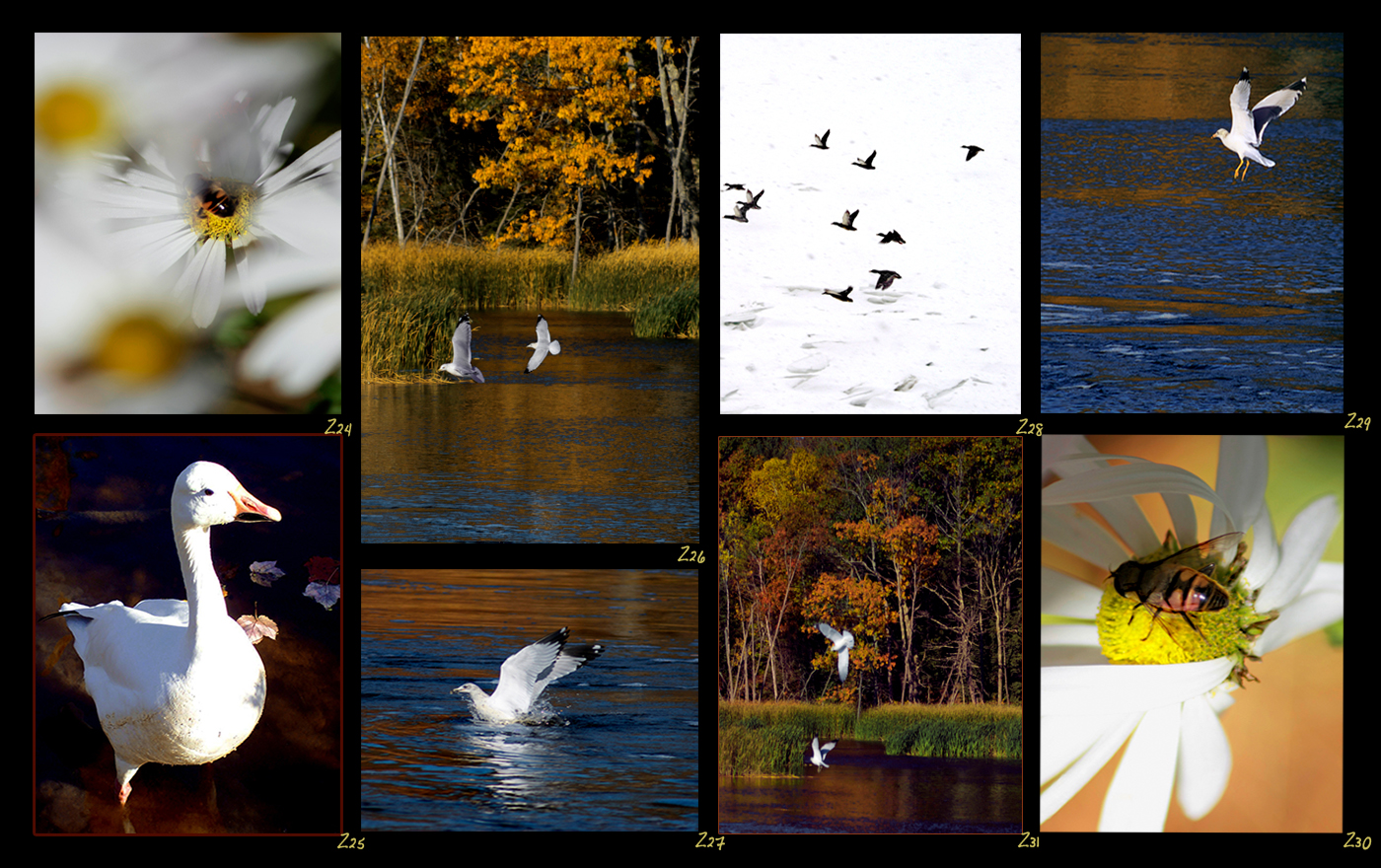 Photos of birds, bees, seals, horses, fireworks, feathers, couches in the woods, laundry hanging on lines, flowers, angels, navy planes, turtles, mushrooms, chairs, farming equipment, dragonflys, snakes, and other magnificent things!